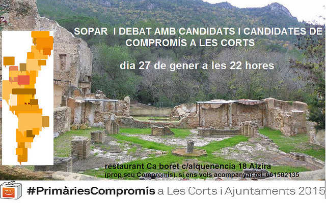 Dins del procés de les primàries per a triar la llista que concorrerà a les eleccions per a triar els diputats i diputades de Les Corts del pròxim mes de maig, demà dimarts, 27 de gener, hi haurà un sopar a Alzira on la gent podrà escoltar a alguns candidats i candidates que es presenten per a formar part de la llista per les comarques de València.