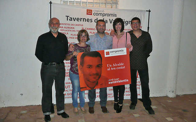 La presentació la va efectuar el candidat de Compromís i aspirant a la reelecció d’alcalde, Jordi Juan, que va indicar com el cartell segueix el model i disseny general que usa Compromís en les campanyes municipals i autonòmiques del 24 de maig. De fet, tot el material gràfic està basat en la imatge del candidat i les llegendes “Un alcalde al teu costat” i “Jordi Juan, amb valentia” seguint també en aquest darrer cas el eslogan general de Compromís.