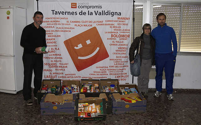 Compromís de Tavernes ha aportat com a col·lectiu un total aproximat de 140 kg. de menjar no perible adquirit en comerços i botigues de la localitat. Cal significar que aquesta quantitat, encara que aportada pels membres del col·lectiu, és independent i a banda de les aportacions personals fetes tant pels militants com pels simpatitzants en els diversos actes solidaris organitzats a Tavernes al llarg de les festes.