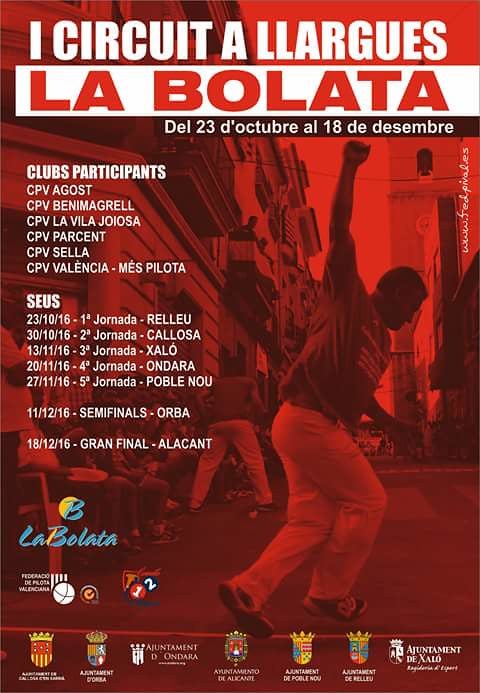 En l’acte es van presentar tots els equips participants en aquesta primera edició del Circuit a Llargues La Bolata’, que són CPV Parcent, CPV Benimagrell, CPV Sella, CPV València, CPV La Vilajoiosa i CPV Agost. També es van presentar els jugadors que conformaran cada equip. Cal destacar que per a la disputa d’aquest campionat molts dels equips participants s’han reforçat de cara a poder oferir el màxim nivell possible i fer-se amb la victòria i el suculent premi de 2.000€ per al campió. Equips com CPV Sella comptaran amb Màlia de Vall Laguar al traure; amb el CPV Benimagrell jugarà Jose Martínez del Campello amb un palmarès de 10 campionats de la Lliga a Llargues, 2 campionats del món a llargues amb la selecció i 2 títols europeus;amb el CPV la Vila Joiosa jugaran Jan i Marc Giner de Murla, pare i fill que formen una dupla, al traure i al rest, espectacular. Més són els equips que s’han reforçat fent mostra del gran interès que aquest campionat ha despertat.