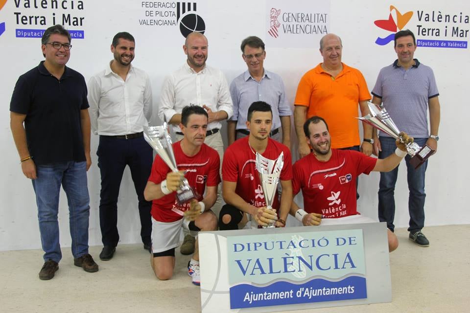 De roig l’equip de Genovés representat per Sergio del Genovés, Alberto d’Aielo de Rugat i Roberto d’Alzira, i de blau, l’equip de la Llosa de Ranes format per Guille d’Alzira, Moro d’Alcàntera i Tonet ll del Genovés.