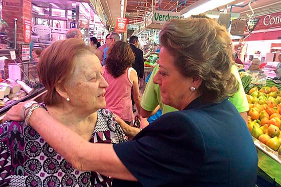 Rita Barberá acudí este divendres, fora d’agenda i per sorpresa, al mercat del Cabanyal. Ho féu hores després de ser esbroncada per una vintena de veïns i opositors i que alguns venedors i clients no volgueren encaixar-li la mà. L’alcaldessa de València aplegà cap a les 10.30 acompanyada dels regidors Fèlix Crespo i Alfonso Novo. Es tractà d’una visita fugaç i parcial al mercat. Un recorregut pel passadís central entre fruiteries, xarcuteries i botigues de formatge fins aplegar a la parada de pollastres de Pilar. Allí encaixà la seua mà: “disculpeu pel ‘folló’ d’ahir, però no va ser culpa meua”. I la venedora, que ha estat votant del PP i “ara m’ho estic pensat” li recriminà l’estat de conservació “lamentable” dels carrers que toquen la zona de la prolongació. “Ma filla paga 400€ de contribució. O ho arregles o baixes l’impost”, li exigí.
