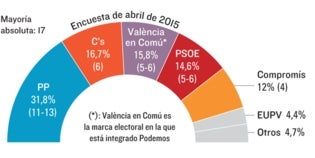 La irrupció de Podemos deixa fora de l’ajuntament de València en aquesta ocasió i sempre segons el sondeig de Sigma Dos, a Esquerra Unida després que fracassaren les negociacions entre les dues formacions per a elaborar una candidatura ciutadana conjunta. València en Comú també torpedeja les expectatives de Compromís que malgrat aconseguir un regidor més, seria la quarta i última força del consistori.