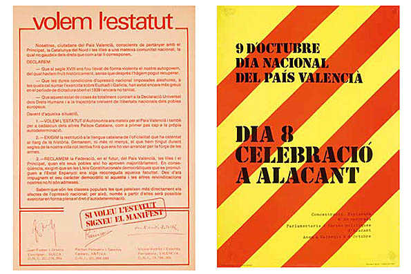 També s’exposen cartells de manifestacions de l’època per a reclamar l’estatut; un diccionari valencià-català-balear; el llibre de Fuster Nosaltres, el valencians; l’acta de constitució del Consell de País Valencià, o el Butlletí Oficial del Consell del País Valencià de 1978, entre d’altres.