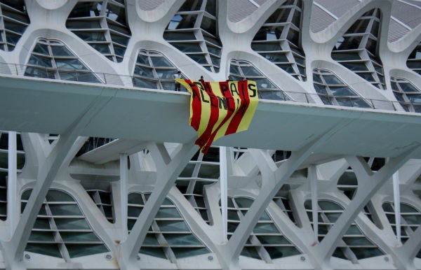 El Bloc d’Estudiants Agermanats ha efectuat la penjada d’un penó de la conquesta de considerable grandària amb la frase ‘Som País Valencià’ des de la Facultat de Filologia, Traducció i Comunicació de la Universitat de València i posteriorment des del Museu de les Ciències Príncep Felip, com a resposta al veto del PP al terme ʹPaís Valenciàʹ.