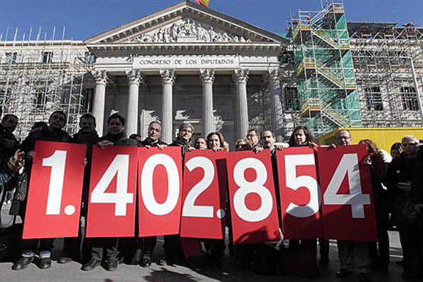 Centenars de persones han celebrat al crit de “sí que es pot” que el PP haja decidit finalment votar a favor de la presa en consideració de la Iniciativa Legislativa Popular (ILP) per a regular la dació en pagament i paralitzar els desnonaments promoguda per la Plataforma d’Afectats per la Hipoteca (PAH). “Sí que es pot. La lluita és l’únic camí”, ha corejat la multitud concentrada enfront de la Porta dels Lleons del Congrés dels Diputats per a recolzar la iniciativa.