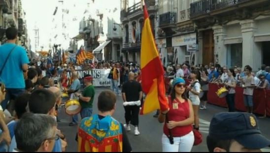 En una part del muntatge apareixen imatges d’una processó cívica del dia del País Valencià, però no de militants del PP, sinó d’España 2000 i el GAV.