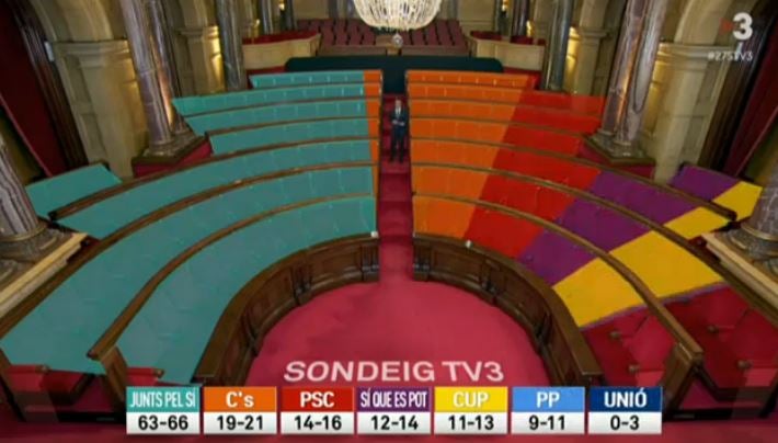 Així, tal com reflectien les enquestes durant la campanya electoral, la coalició Junts pel Sí hauria obtingut la victòria en aquestes eleccions amb 63-66 escons.