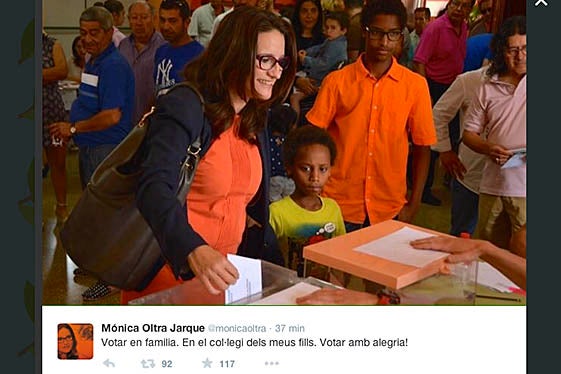 Mónica Oltra, candidata a la presidència de la Generalitat per Compromís ha assegurat: “Estic molt contenta d’haver votat en el col·legi on estudien els meus fills. He vingut a votar amb molta alegria i estic convençuda que aquest dia tan important per als valencians es traduirà en vots amb alegria que ompliran les urnes durant aquest diumenge”.
