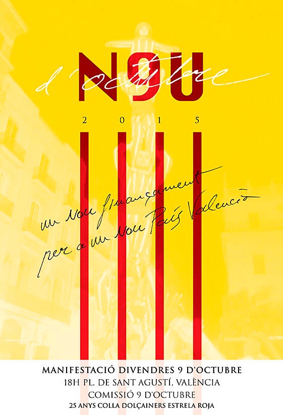 Finalment, la diada d’enguany és també un motiu de celebració, perquè la Colla de Dolçainers i Tabaleters “Estrela Roja” de València fa 25 anys. Amb la celebració d’aquest aniversari la Comissió 9 d’Octubre vol fer una aposta simbòlica per la cultura popular dels valencians, instrument fonamental de pervivència i modernització de la nostra llengua, i de socialització de valencians vells i nous en la cultura del poble valencià com a instrument per a la cohesió social.