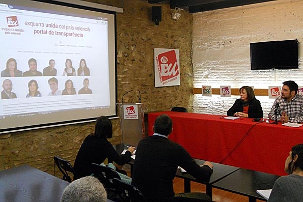 Coincidint amb la presentació per part del grup parlamentari en les Corts d’una Proposició de Llei sobre Transparència, el 15 de setembre de 2012 el Consell Polític Nacional d’EUPV va aprovar per unanimitat posar en marxa el Portal de Transparència. En la web s’ofereix tota la informació rellevant sobre els càrrecs públics i l’organització. També inclou les dades referides al seu finançament.