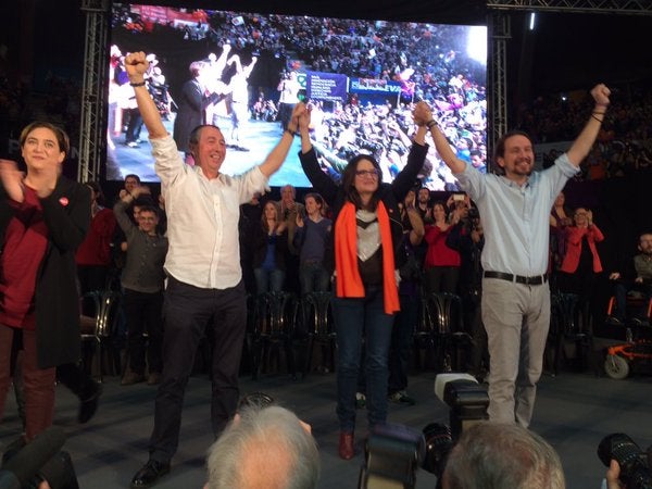 Però el clímax arribà amb Ada Colau i Mònica Oltra. La primera apostà per “feminitzar la política de dalt a baix”. “És l’hora de les dones”, exclamà i seguidament recordà l’avi Ramon, “un pastor molt humil d’Osca” a qui la postguerra féu callar, viure amb por i emigrar a la gran urbs, explicà. “La néta d’un pastor ha arribat a ser alcaldessa de Barcelona”, pronuncià amb l’emoció a vessar d’ulls. Una commoció bessona a la de Mònica Oltra en nomenar un altre pastor, Miguel Hernández, a qui son pare solia llegir-li les vesprades de diumenge. “Es tu risa la espada más victoriosa”, recità Oltra, qui construí el discurs més ideològic. “No hi haurà pau per als corruptes”, avisà el PP. “Compromís i Podem som la primera força de les Corts”, advertí el PSPV.