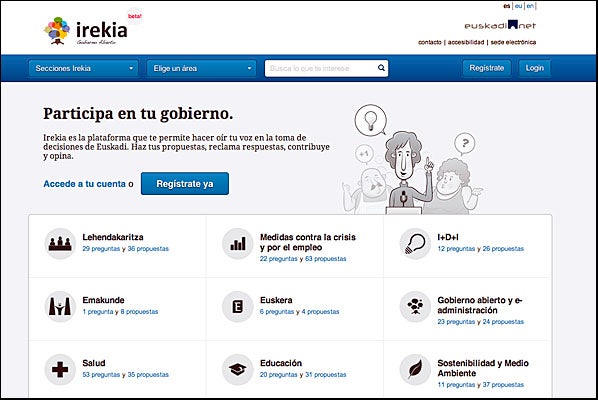 Per a Sala, Irekia, el portal del Govern basc guardonat per la Comissió Europea, suposa el model a seguir, ja que exposa les dades públiques i permet la reutilització a tercers perquè puguen crear els seus propis serveis utilitzant aquesta informació.