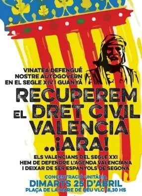 El lema de la concentració serà «Recuperem el Dret Civil Valencià, ara!», i tindrà caràcter unitari. De fet, entitats com Acció Cultural també han donat suport públic a la protesta, que reunirà també entitats empresarials, sindicals i de tot tipus per a reclamar la restitució de la capacitat legislativa prevista a l’Estatut valencià. José Ramón Chirivella, president de Juristes Valencians, fa un clam per a «defensar els interessos dels valencians, per a evitar “noves Almanses i demostrar que els valencians no volem ser espanyols de segona».