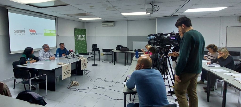 Miquel Gelabert, secretari general de l’STEI, ha protagonitzat una roda de premsa a Palma per a avaluar aquesta situació als tres territoris acompanyat per la portaveu d’USTEC, Iolanda Segura, i pel responsable d’acció sindical d’STEPV, Marc Candela.