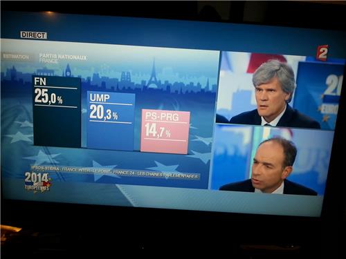 D’acord amb aquestes projeccions, el Front Nacional de Le Pen podria aconseguir uns 24 eurodiputats, l’UMP en tindria 19 i el Partit Socialista 13. “S’ha votat a favor del retorn de la sobirania nacional”, ha declarat Le Pen poc després que es feren públics els sondejos. Le Pen ha dit que tenen “una gran responsabilitat” i que estaran “a l’alçada”. La líder d’extrema dreta, que tenia fins ara 3 eurodiputats, ha dit que el president de la República, François Hollande, haurà de “prendre decisions” perquè l’Assamblea Nacional siga “independent”.