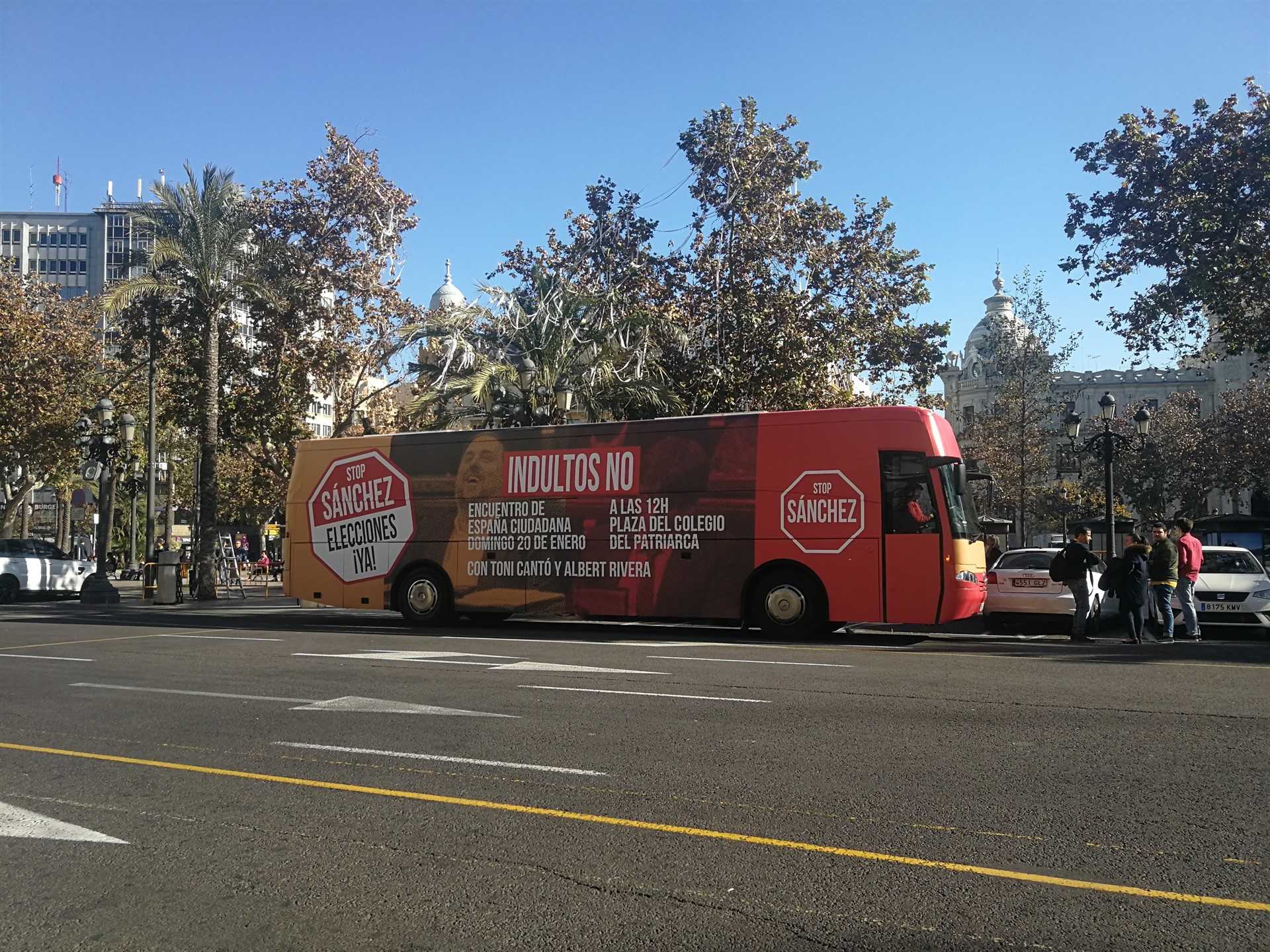 L’autobús d”España Ciutadana’ recorre durant aquestos dies la ciutat de València per a denunciar que el “sanchisme” està “negociant uns pressupostos a canvi d’indults”, així com per a advertir que el “separatisme és un problema en la Comunitat”.