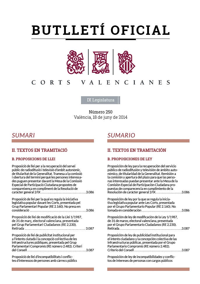 El nou disseny de les publicacions oficials de les Corts Valencianes entrarà en vigor en gener de 2016.