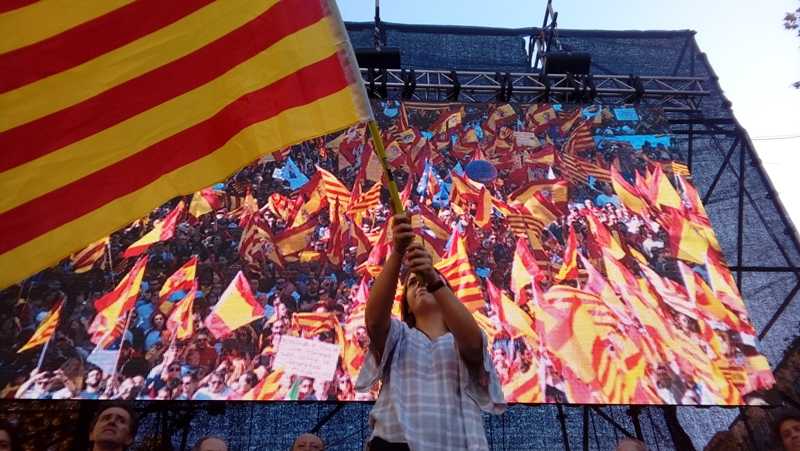 I Antonio marxaria encara més lluny, “a Rabat, on encara tinc família”. “Ho dic de veritat. O ell o jo. O se’n va el Puigdemont dels ous o jo torne al Marroc”. I entre els que enlairen les banderes en direcció a l’etern helicòpter de la Guàrdia Civil hi ha Montserrat, Pedro, Lugui i Araceli. Van cap a les Rambles a fer un mos. “La República? Això és una guasa”. I en saber que el periodista és valencià, Montserrat llança l’advertència: “Aneu amb compte que per allà també han començat a adoctrinar”. “De quin mitjà ets?”, pregunta Lugui. “Diari La Veu”. “La Veu? La Voz, no?”.