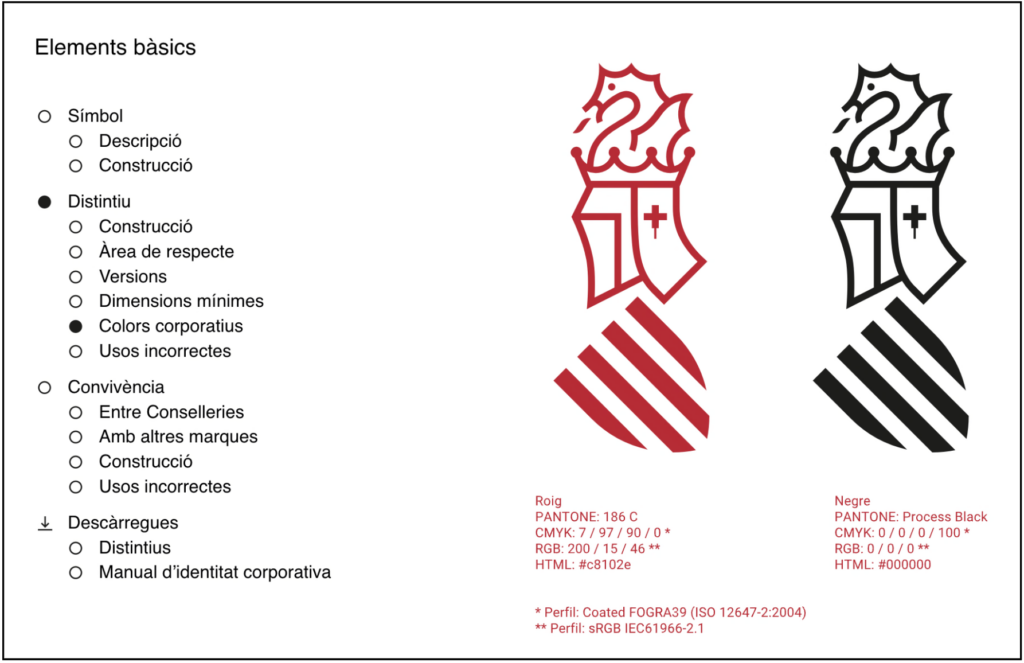 A més, subratlla que una de les “eines idònies per a configurar, dissenyar i definir els usos de la imatge corporativa institucional és a través del manual d’identitat corporatiu, que és una garantia d’identitat institucional única i recognoscible que la Generalitat realitza en l’exercici de la seua potestat d’autoorganització amb funcions tan rellevants com assegurar una identitat visual homogènia, coherent i recognoscible”.