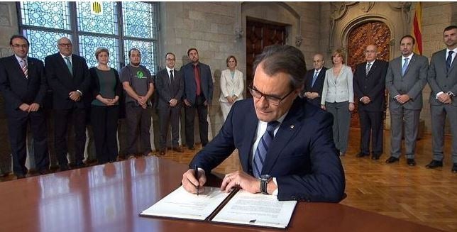 El secretari del Govern, Jordi Baiget, ha estat l’encarregat de llegir el decret, que Mas –aquesta nit l’ha passada a la Casa dels Canonges– ha signat el document amb una ploma de fabricació catalana de la marca Inoxcrom que porta l’escut de la Generalitat incorporat. L’acte s’ha dut a terme al saló Verge de Montserrat, al costat del despatx del president. “L’objecte de la consulta és conèixer l’opinió dels ciutadans amb la finalitat que la Generalitat puga exercir la iniciativa política i legal que li correspon”, sosté el decret.