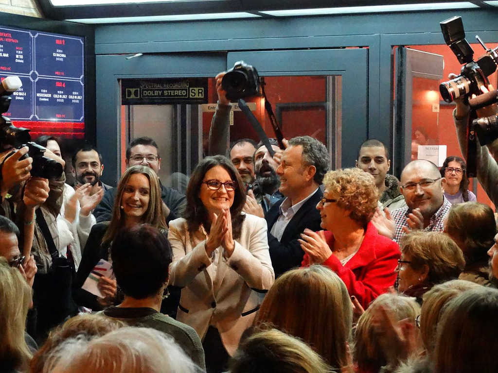 La sala dels cinemes Aragó es va quedar xicoteta aquest diumenge per veure en escena a qui, sens dubte ja és la líder i referent principal de Compromís, Mònica Oltra, que va participar en un ‘multimíting’ amb els líders de les diferents coalicions i marees que conflueixen amb Podem en les eleccions del 20D. Destacar que per a Pablo Iglesias, Oltra ja és el referent de Podemos al País Valencià.