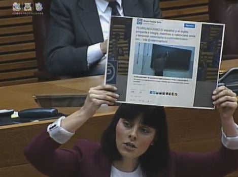 Per la seua part, Sandra Mínguez, de Podem, ha insistit que portar un debat filològic a les Corts “es una pèrdua de temps: vostès −referint-se al PP− l’únic que volen és fer política i electoralisme de la llengua”. Mínguez ha mostrar la piulada del PPCV sobre que “el valencià tensiona” per mostrar l’actitud dels populars sobre la llengua.