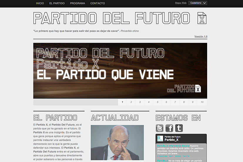 En el vídeo, ambientat en un hipotètic futur en el qual aquesta formació ja hauria guanyat les eleccions, el Partit X “guanya perquè aplica el programa que permet instaurar una vertadera democràcia amb la qual la gent puga defensar els seus interessos”. Naix amb vocació de traslladar a Espanya experiències d’intervenció ciutadana en la gestió política dutes a terme en altres països com Brasil o Islàndia.