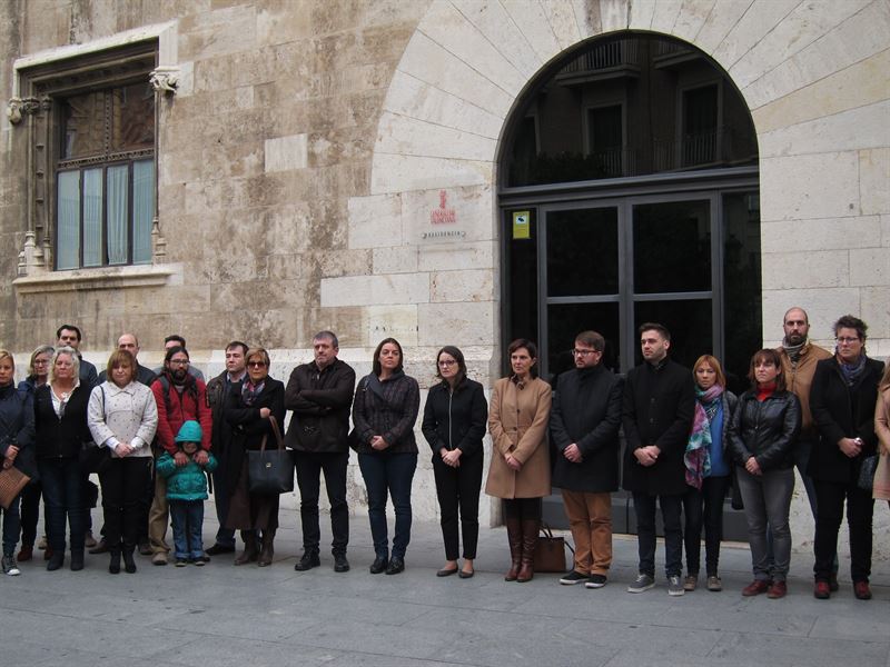 Els partits polítics amb representació en les Corts han rebutjat aquest dissabte la violència de gènere que “colpeja a tots” i que “afecta a tota la societat” amb tres minuts de silenci a la porta del Palau de la Generalitat, com a acte repulsa pel presumpte cas de violència de gènere ocorregut a Torrevella en el qual, segons les primeres investigacions, un home va matar la seua dona i la seua filla i posteriorment es va suïcidar.