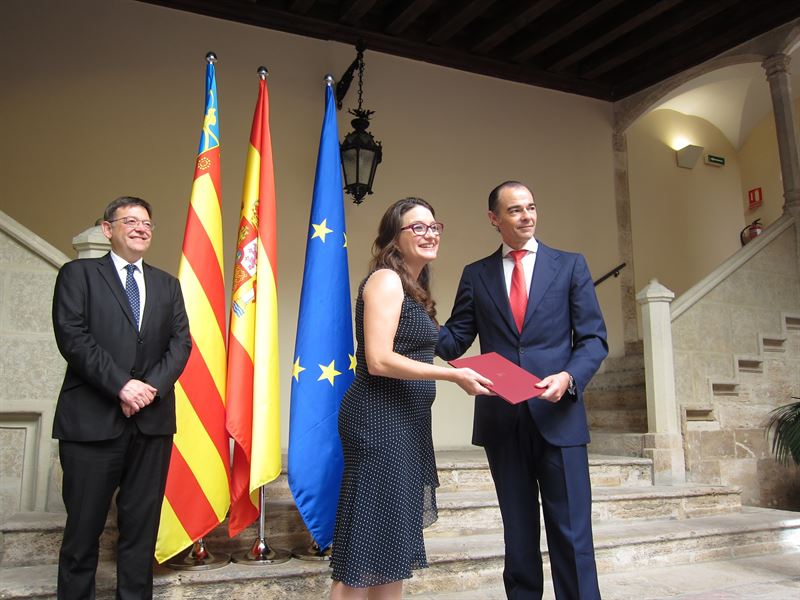 Mònica Oltra ha rebut de l’exconseller de Sanitat Manuel Llombart aquest dimarts el traspàs de poders, en un acte celebrat al Palau Valeriola, seu de la nova conselleria, a qui ha agraït que li haja “facilitat” el canvi igual que a l’exconsellera de Benestar Social Asunción Sánchez Zaplana i als seus col·laboradors per haver-se posat a la seua disposició “en aquesta etapa de transició”.