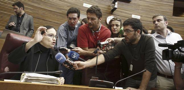 Mentrestant, les boques de l’hemicicle s’han convertit en un grum de parlamentaris a l’espera. Els del PP criticaven la “diputada espectacle”. I en el PSPV, José Benlloch, alcalde de Vila-real, arremetia amb cruesa en contra d’Oltra: “De què va! [Cotino] té més raó que un sant. Nosaltres no ho farem, però ells sí cada volta que vulguen un titular.”. El seu company, Juan Soto, negava amb el cap: “discrepem amb el concepte d’ordre…”. I Benlloch esbufegava: “Si ve la policia li posaran 1000 euros de multa. Ja voràs com ja no ho torna a fer!”. Minuts després, Soto s’acostava a Oltra i li feia un mig abraç. Serà l’únic, llevat dels companys de grup, que donarà suport a la diputada.