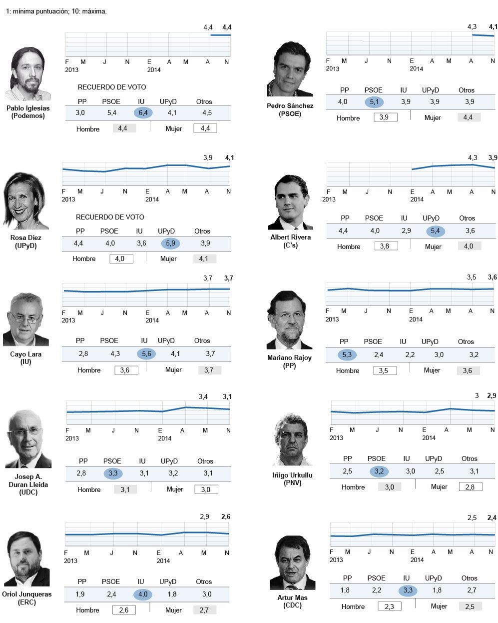Per a UPyD les coses no pinten millor. La intenció de vot que el sondeig li concedeix -4,5%- és fins i tot dues desenes menor que el que va aconseguir en les urnes fa tres anys i se situa dos punts per sota de la seua collita en les europees. La seua història pot acabar sent la d’un enlairament reeixit truncat prematurament. La capacitat del petit partit per traslladar missatges clars i propers, la força del seu líder i la seua obstinació per la transparència va impulsar a UPyD de manera notable. Després, els enfrontaments interns, els personalismes i la incapacitat per a obrir horitzons pactant amb altres grups nous, com ha succeït amb las fracassades converses amb Ciutadans, li han tallat les ales.