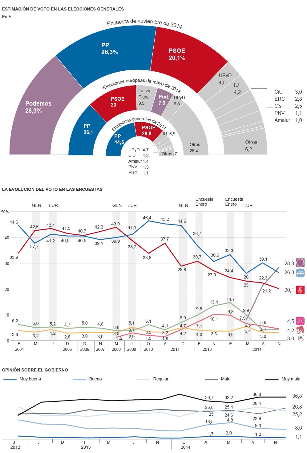 L’escenari que dibuixa l’enquesta bé pot qualificar-se d’històric. Mai ha succeït alguna cosa igual: sorgir del no-res i fer-se amb la victòria d’una plomada, atraient com un imant el malestar, la decepció, les ganes de canvi i fins i tot de ruptura d’una gran part de la ciutadania. Les raons d’aquesta bolcada impressionant estan a la vista de tots, encara que les dues formacions tradicionals les hagen intentat obviar: els sacrificis imposats a sang i foc per a superar la crisi, la corrupció rampant d’alguns mentre la majoria s’ofega o la falta de perspectives per als joves són algunes d’elles.
