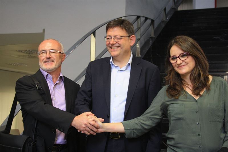 Els candidats a la Generalitat Valenciana del PSPV-PSOE, Compromís i Podem, acompanyats dels seus respectius equips, han mantingut aquest dilluns una primera presa de contacte després de les eleccions del 24 de maig per mirar d’arribar acords per a un nou govern valencià.