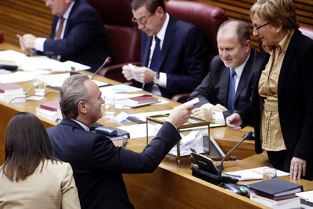 La sessió plenària s’ha iniciat amb l’elecció del president de les Corts, en votació secreta. En la primera votació s’han comptabilitzat, a favor d’Alejandro Font de Mora, 48 vots, el mateix nombre de diputats del PP presents a l’hemicicle, ja que han faltat Alfonso Rus, José Ciscar, Maritina Hernández, Andrés Ballester, Miguel Zaragozá i Marcos Zaragozá.
