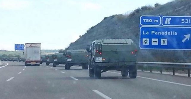 L’exèrcit ha explicat que aquest desplaçament és “rutinari” i es tracta d’un comboi que transporta “recanvis destinats a la caserna del Bruc de Barcelona”, arreplega el portal digital del diari 20 Minutos. Fonts militars han indicat que aquests vehicles procedeixen de Saragossa, on han fet una parada en el transport de tropes d’infanteria des de Madrid.