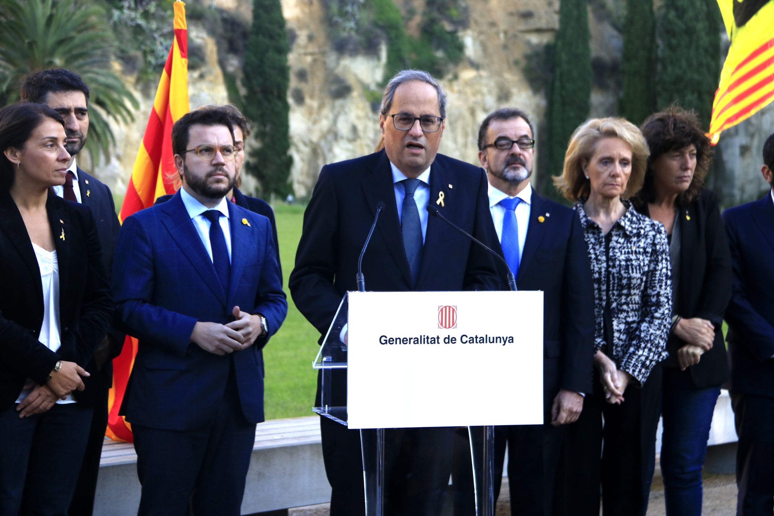 BARCELONA. El president de la Generalitat de Catalunya, Quim Torra, ha remarcat la perseverança de l’executiu després de la sentència del Suprem per l’1-O: “Té per objectiu que no es torni a fer; doncs ho tornarem a fer”, ha advertit. Des del cementeri de Montjuic, en el marc del 79é aniversari de l’afusellament de l’expresident, i acompanyat del govern –menys el conseller Miquel Buch–, Torra ha asseverat que l’autodeterminació és un dret “reconegut”. “Mai no defallirem en el seu exercici”, ha reiterat. El president també ha exigit al govern espanyol que reconega el “crim d’Estat” contra Lluís Companys per tal de fer “justícia”.