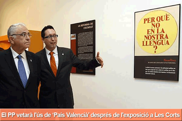Ara, potser, per a calmar aquests mals moments, el grup popular presentarà una proposta a Les Corts, el pròxim 15 de maig, per a vetar en els documents oficials de la càmera el terme País Valencià. La recuperació d’aquesta proposició no de llei, com arreplega el diari Las Províncias, es va presentar el mes d’octubre per Jorge Bellver, en la seua primera mesura com a nou síndic del PP.
