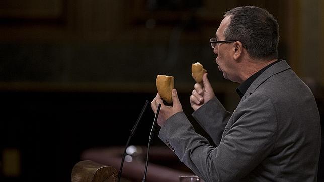 La vicepresidenta del Congrés, la ‘popular’ Celia Villalobos, ha renyat aquest dimecres el diputat de Compromís-Equo, Joan Baldoví, per partir un tros de pa en la tribuna d’oradors de l’hemicicle per a il·lustrar la seua crítica a les retallades patides al País Valencià en els Pressupostos per a 2015. “Té temps suficient per a no fer el pallasso”, li ha dit.