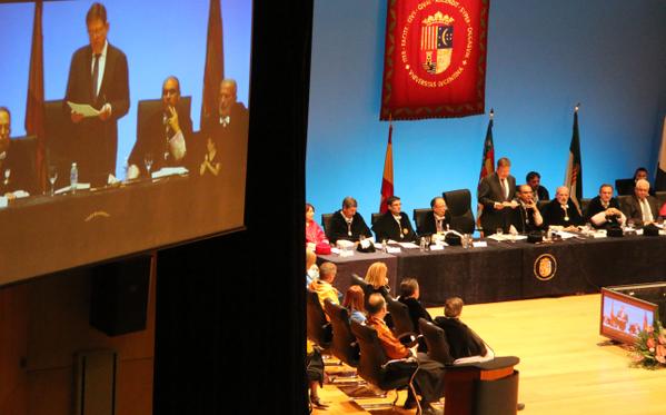 Per la seua banda, el rector de la Universitat d’Alacant, Manuel Palomar, ha centrat el seu discurs en el que considera “el vertader problema de la universitat pública espanyola: el finançament”. Ha assenyalat que “no és factible, aspirar al nivell dels centres d’excel·lència universitària del món amb una inversió per alumne més baixa que la d’aquells”, i ha supeditat “el bon compliment dels nostres compromisos, a l’engegada d’una Llei de Finançament de les Universitats estable i equitativa, que ens permeta desenvolupar les nostres tasques en un marc d’estabilitat pressupostària i normativa”.