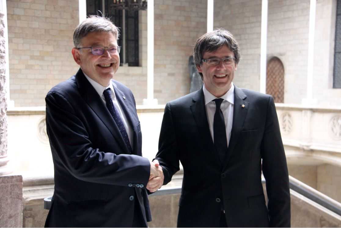 El president de la Generalitat Valenciana Ximo Puig i el seu homòleg català Carles Puigdemont es reuniran aquest dilluns en la primera reunió bilateral al més alt nivell celebrada entre els dos governs al Palau de la Generalitat Valenciana des del 2009, segons que han confirmat fonts de la Generalitat Valenciana. Amb el Corredor Mediterrani com a eix vertebrador del front comú catalanovalencià, tots dos presidents mantindran la seua segona trobada, després de la visita de Ximo Puig a Barcelona, el passat 16 de maig. En aquesta reunió els dos presidents van acordar la celebració de la cimera conjunta d’aquest dilluns a València per pressionar el futur Govern espanyol perquè complisca els compromisos amb el Corredor. La trobada es va concretar després durant la reunió constitutiva de la Taula Estratègica Catalana del Corredor, celebrada el 25 de maig al Palau de Pedralbes.