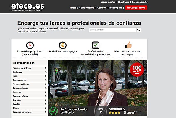 La web etece.es (“temps per a aquells que no tenen temps”, segons arreplega la seua pàgina web) ha seleccionat ja 50 autònoms amb els quals s’engegarà la plataforma, que arribarà fins els 100 professionals quan es realitze la segona fase de selecció. Els 50 autònoms que oferiran els seus serveis han d’estar donats d’alta en la Seguretat Social i estar especialitzats en diferents tasques: des d’un fotògraf o una hostessa fins a un lampista, un tapisser, un netejador o un transportista per a fer ports o mudances.