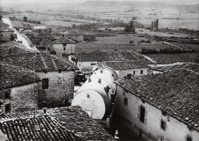 Però al bell mig d’aquell ‘desarrollo’, entre els plans de regadiu i les plantes automobilístiques d’origen francès es colaven altres coses, com això que es veu al centre de la foto, atrapat entre unes cases ensostrades amb teula moruna. La imatge pertany a Berberana, a la província de Burgos, que ara té una carretera de circumval·lació i llavors no, que és quan hauria anat bé. En aquella època, les carreteres estatals travessaven tots els pobles que tocaven, i algunes tenien l’ample d’un carril-bici. Llevat d’això, Berberana segueix igual. I l’objecte no identificat és l’atuell del reactor nuclear que estaven muntant a Santa María de Garoña, igualet que el de Fukushima però un any més antic.