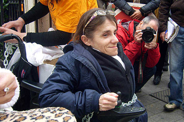 Durant tres dies de desembre va ser el centre de totes les mirades. Al costat d’altres dues companyes va dir prou i va decidir encadenar-se, fins que la recentment nomenada consellera de Benestar Social, Asunción Sánchez Zaplana, es va acostar a elles i els va convocar a una reunió. Tres dies en què el seu mòbil sonava cada cinc minuts: ʺel carregava quatre vegades al dia, va ser una bogeriaʺ. Tres dies que la van deixar esgotada, però satisfeta. ʺHem aconseguit que la gent sàpia el que passa i que prenga consciència de la injustíciaʺ.