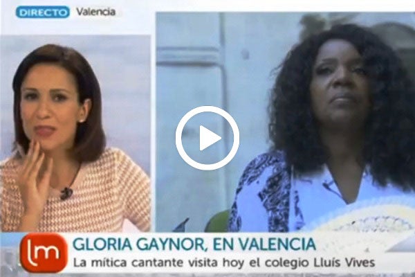 Ahir Gloria Gaynor visitava el cèntric i històric col·legi Lluís Vives de València. Ho feia interessada per un vídeo que els alumnes del centre públic li havien fet arribar a través de les xarxes socials, on els alumnes feien una versió de l’I will survive. Gaynor va fer la visita aprofitant l’avinentesa que actuava ahir dilluns als Jardins de Vivers i s’hi va acostar.