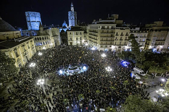 Uns 60.000 valencians, segons els organitzadors, han recorregut els carrers de València per reclamar la dimissió d’Alberto Fabra i la convocatòria d’eleccions. Amb el ritme de ‘L’Estaca’ de Lluís Llach, que ha estat molt present al llarg del recorregut, els manifestants han respost al carrer contra el tancament de la Ràdio i Televisió Valenciana d’aquest divendres al crit de “No teniu vergonya!”, “Botiflers”, “Açò és un colp d’estat” o “Fabra feixista, ets un colpista”, entre altres consignes. Una gran pancarta amb l’explícit ‘Eleccions anticipades ja!’ ha encapçalat la manifestació amb una capçalera conformada pels líders dels partits polítics de l’oposició així com els portaveus de les entitats, associacions i sindicats convocats.