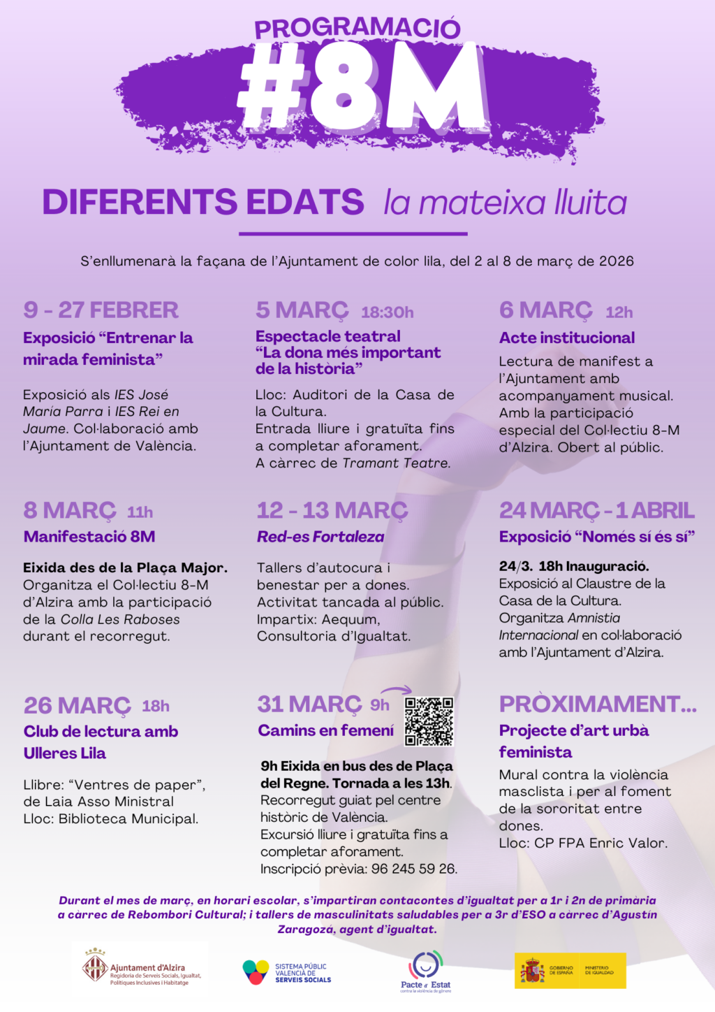 Amb aquesta programació, Alzira aposta per una commemoració que interpel·la totes les generacions i que combina reflexió, cultura i acció col·lectiva per avançar cap a una societat més justa i igualitària.