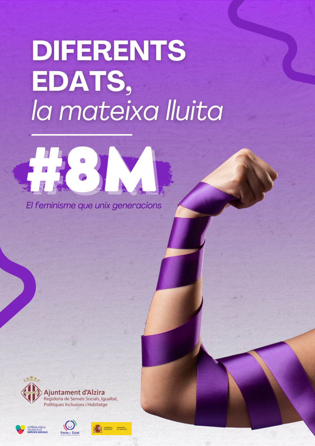 La Regidoria d’Igualtat de l’Ajuntament d’Alzira (la Ribera Alta) ha presentat una àmplia programació amb motiu del 8 de Març, Dia Internacional de la Dona, amb el lema “Diferents edats, la mateixa lluita”. El conjunt d’activitats, que tindran lloc al llarg del mes, combina cultura, educació, mobilització social i accions institucionals per a reforçar el compromís amb la igualtat i la lluita contra la violència masclista. Com a símbol visible d’aquesta reivindicació, la façana de l’Ajuntament s’il·luminarà de color lila del 2 al 8 de març.
