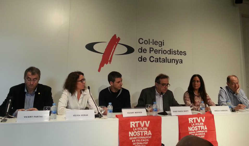 L’acte del Col·legi de Periodistes de Catalunya, en suport a la lluita que estan liderant els treballadors de la RTVV, ha comptat amb la participació del vicepresident del Comité d’Empresa de RTVV, Vicent Mifsud, i de la periodista de la ràdio valenciana, víctima de l’ERO que el Tribunal Superior de Justícia valencià ha considerat nul, Amàlia Garrigós.