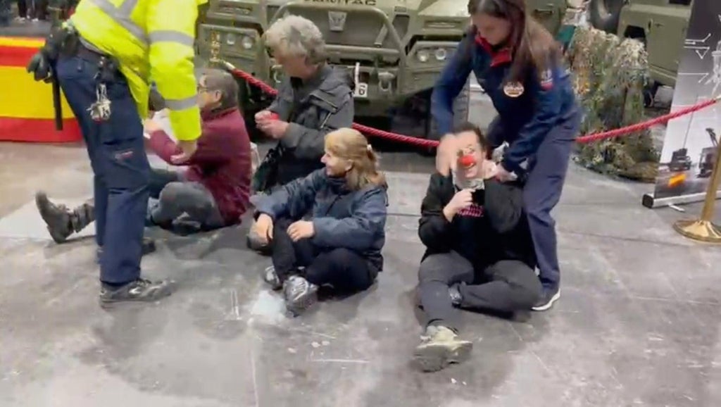 Els agents de seguretat privada els han arrancat violentament de les mans els cartells i dels nassos, els nassos de pallasso, però tot i açò hi ha hagut també confeti rosa, en record a l’acció en què va pintar-se un tanc de color rosa en l’Expojove del 2023. Els membres del MOC han romàs en el lloc durant uns minuts corejant lemes contra la presència militar en la fira infantil i responent a les preguntes dels mitjans de comunicació allí presents, i finalment han abandonat el lloc pel seu propi peu.